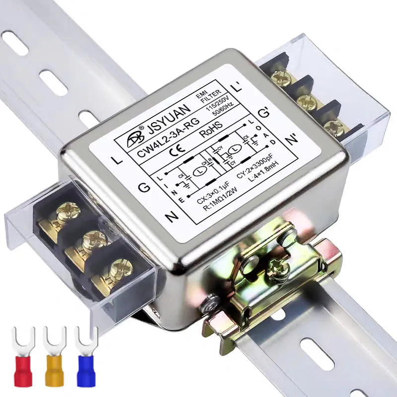 – Loại bộ lọc: Bộ lọc EMI nguồn AC 1 pha, loại 2 tầng lọc nhiễu, gắn ray (R-type, rail mounting) với đầu nối kiểu terminal bolt.